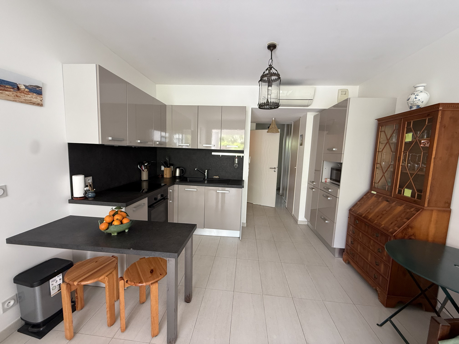 A 500 m du centre ville et à 100 m des commerces. Dans une résidence privée située en bord de mer . Appartement type 2 bis d'une surface loi carrez de 46, 75 m² (situation idéale en bout de bâtiment) comprenant loggia fermée et sécurisée de 17, 15 m², entrée avec placard, chambre cabine, séjour ouvert sur cuisine équipée, une chambre, dégagement, salle de bains, wc séparé. Terrasse couverte donnant sur jardinet 37, 33 m². Place de parking privé et attribué dans parking sécurisée avec portail électrique. Prix de vente: 388 000 € incluant 3,47 % d'honoraires d'agences à la charge acquéreur.