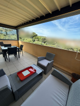 T2 VUE MER -Au 2e étage d' une résidence privée située au calme, appartement type 2 de 46 m² climatisé comprenant séjour ouvert sur cuisine équipée, dégagement avec placard, une chambre avec placard, salle de bains/wc. Terrasse couverte d'une surface de 21 m² avec couverte pergola bioclimatique et éclairage intégré. Vue dégagée mer et citadelle Parking privé avec place attribuée. Prix de vente : 280 000 € incluant 4% d'honoraires d'agences TTC à la charge des acquéreurs.