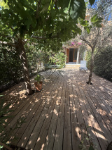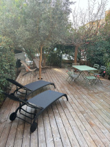 Dans une charmante petite copropriété située au centre de CALVI , situation exceptionnelle au calme et à 500 m du centre ville. Appartement tout confort et état impeccable avec jardinet comprenant entrée, pièce de vie avec beau séjour climatisé et coin salon , cuisine équipée, dégagement, salle de bains /wc (rénové il y a un an), deux chambres avec placard. Situé au rez de chaussée. Loggia d'une surface de 4,80 m² donnant sur une chambre, Loggia d'une surface de 13, 05 m² donnant sur le séjour. Terrasse/ jardinet clôturé et arboré d'une surface d'environ 40 m² avec stationnement à proximité (accessibilité facile). Vendu meublé et équipé avec gout et modernité. Disponible de suite. PRIX DE VENTE : 420 000 €uros dont 2,5% d'honoraires d'agences TTC à la charge des acquéreurs.