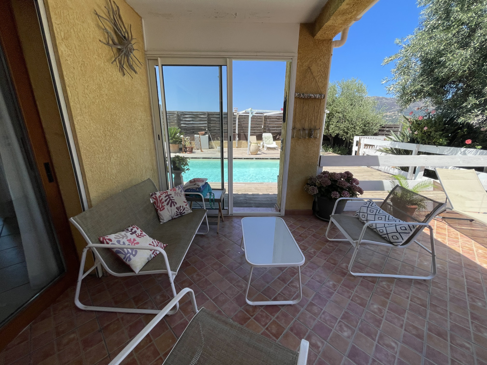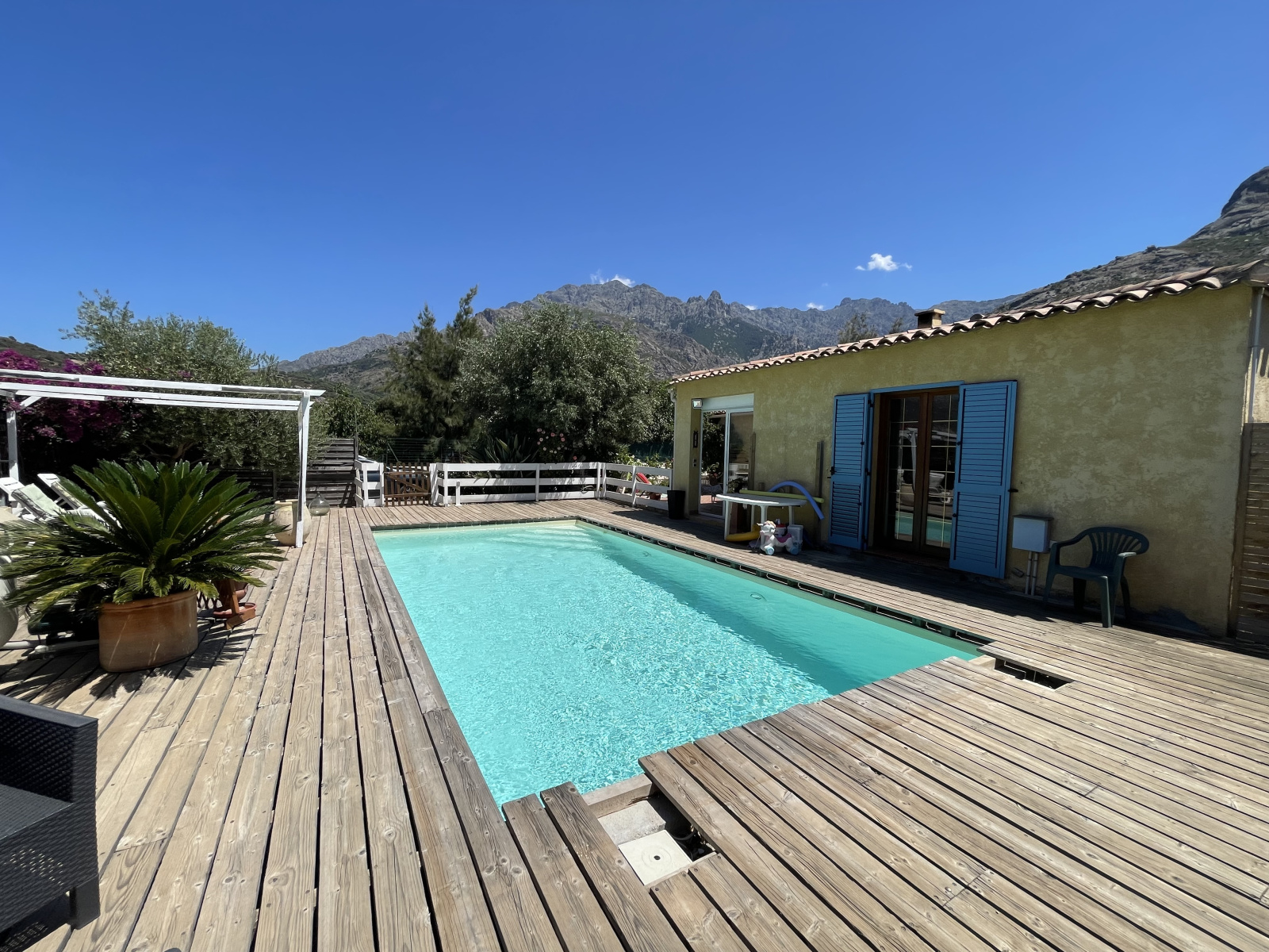 A 500 m du coeur village de CALENZANA dans un secteur résidentiel. Propriété comprenant 3 habitations + 1 garage . Une villa principale de plain pied T4 climatisé d'une surface de 130 m² comprenant séjour avec cheminée ouvert sur cuisine équipée, trois chambres dont une suite avec sdb privative, 2e salle de bains indépendante et wc. Piscine 8x4 sécurisée , 1 appartement T2 avec sa terrasse , 1 maisonnette indépendante T3 avec jardinet clos et entrée indépendante. Le terrain d'une surface de 1000m² clos et arboré avec une vue montagnes. Bon rendement locatif pour les 2 appartements. Prix : 749 000 €uros incluant 34 000 €uros TTC d'honoraires d'agence à la charge des acquéreurs.