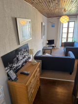 Au niveau rez de rue, entrée, cusine, dégagement, salle de bains, wc séparé, à l'étage, salon donnant sur terrasse vue mer et village, une chambre avec balcon donnant sur l'autre exposiiton.