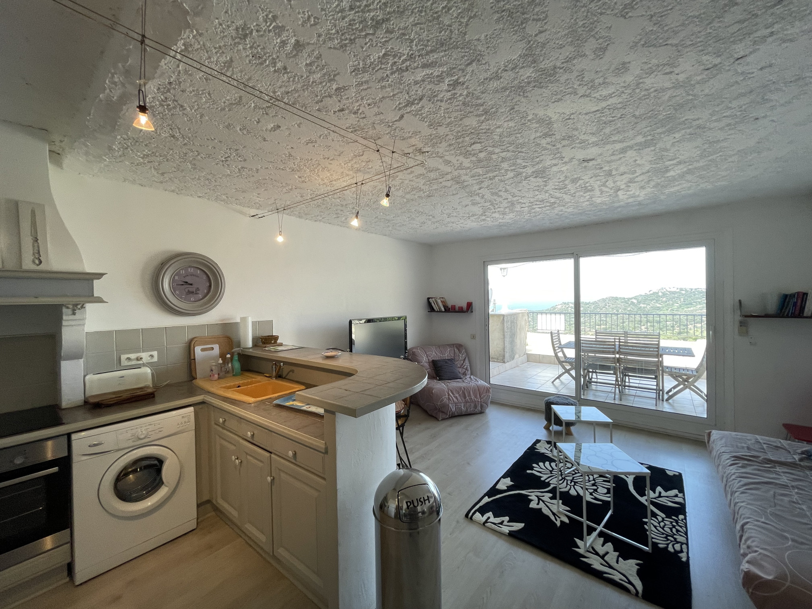 Au coeur du village de LUMIO, au 2e étage d'une résidence. des années 1980. Appartement de 55 m² avec terrasse de 40 m² vue mer exceptionnelle. Séjour climatisé avec cuisine équipée, wc séparé, une chambre climatisé avec placard, 2e wc séparé , salle de bains. Terrasse 40 m² en partie couverte avec une vue sur la baie et le village. Prestations : volets roulants électriques, store de terrasse avec anémomètre, double wc, double accès de l'immeuble. Vidéo/ visite virtuelle sur demande. Charges de copropriété : 1050 €uros / an incluant la consommation d'eau. PRIX DE VENTE : 298 000 € incluant 8 000 € d'honoraires d'agences TTC à la charge de l'acquéreur.