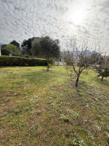 Beau parc arboré et cloturé d'une surface d'environ 1200 m² donnant sur une vue montagnes.