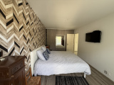 Secteur résidentiel et paisible à 10 min de CALVI en voiture. Villa de plain pied et impeccable de 130 m². Entrée avec placard , wc avec lave mains, grand séjour ouvert sur cuisine équipéee et donnant sur double terrasse (double exposition); buanderie, trois chambres dont une avec salle de bains privative, 2e wc. salle de bains. Appartement type 2 comprenant séjour ouvert sur cuisine et terrasse privative, une chambre, salle de bains/wc.